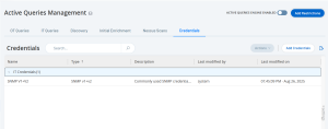 OT Security 会保存凭据,这些凭据会显示在“凭据”页面中。
