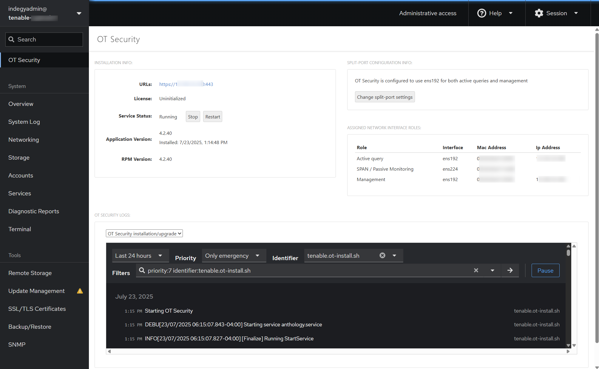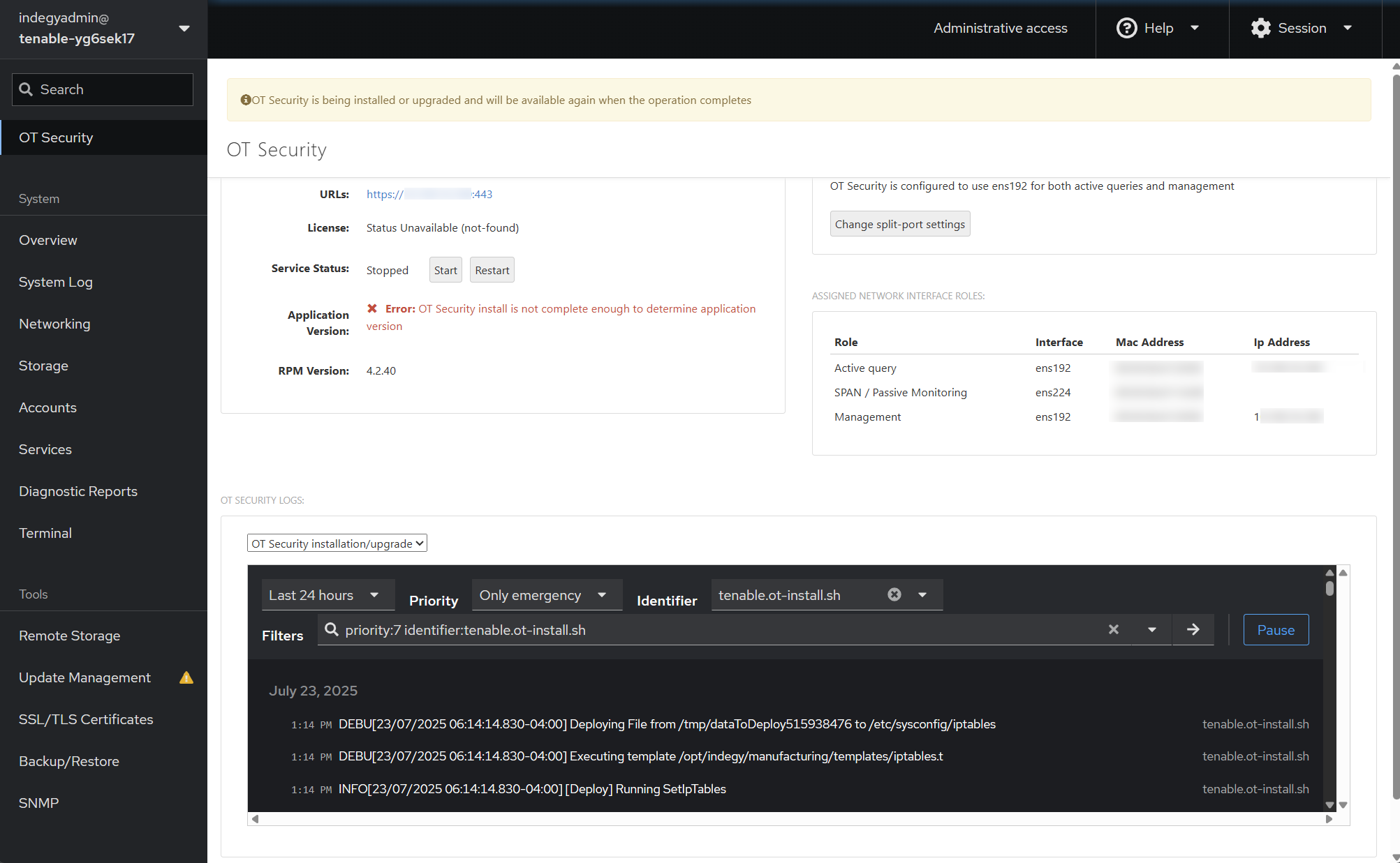 注意:在虚拟机和非 Tenable 硬件上,系统会提示您安装 OT Security。 -
