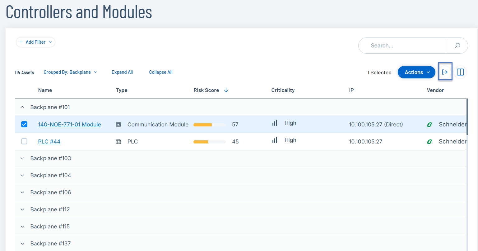 1. 在“清单”下,单击“所有资产”、“控制器模块”或“网络资产”。