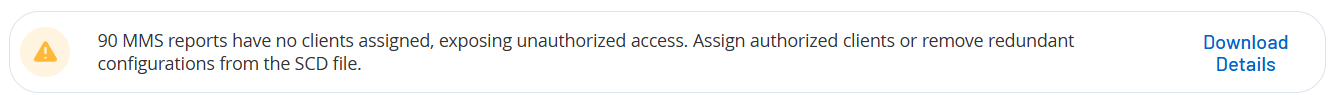 根据您上传的变电站配置描述 (SCD) 文件,OT Security 会生成描述变电站资产之间通信的制造消息规范 (MMS) 报告列表。当 OT Security 检测到 SCD 文件配置中存在未经授权的访问时,会显示一条错误消息。有关上传 SCD 文件的更多信息,请参阅“SCD 文件”。