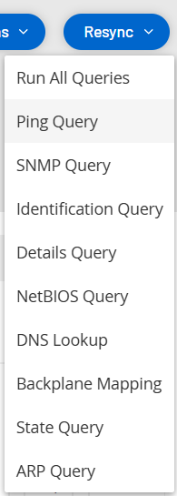 重新同步函数对网络和控制器发起一个或多个查询,以捕获此资产的最新信息。可以运行所有可用查询,或特定查询。