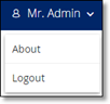 显示当前登录到系统的用户的名称。单击向下箭头获取菜单选项:“关于”(显示软件信息)和“注销”。