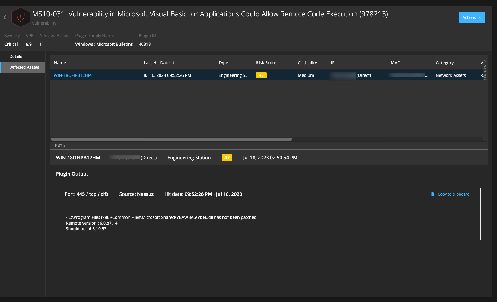 若要从“漏洞”页面查看插件输出的详细信息,请执行以下操作: