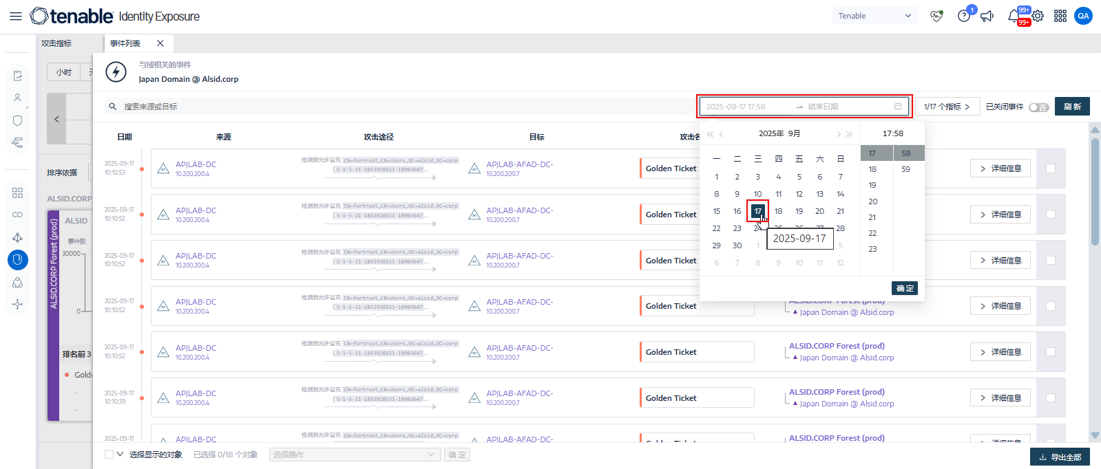 点击“域”框以选择 Tenable Identity Exposure 为其发出警报的域。