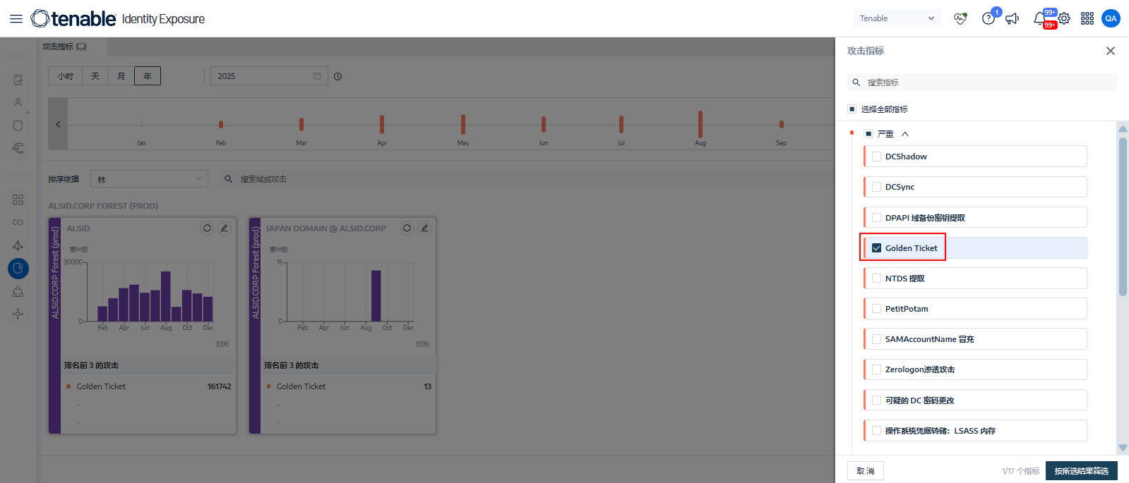 每当出现攻击时:Tenable Identity Exposure 会针对每个异常 IoA 检测发出通知。