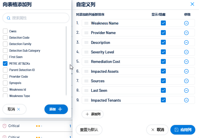 您可以添加、移除列或对其重新排序,以根据您的偏好自定义视图。如果您想要撤销任何更改,可随时重置为默认设置。